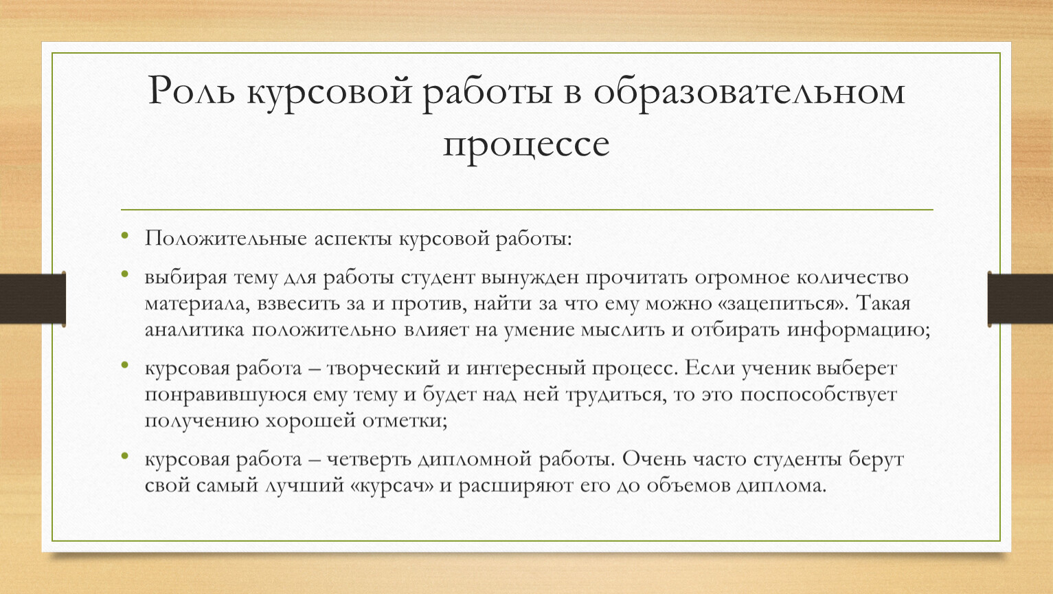 Роль курсовой работы в образовательном процессе